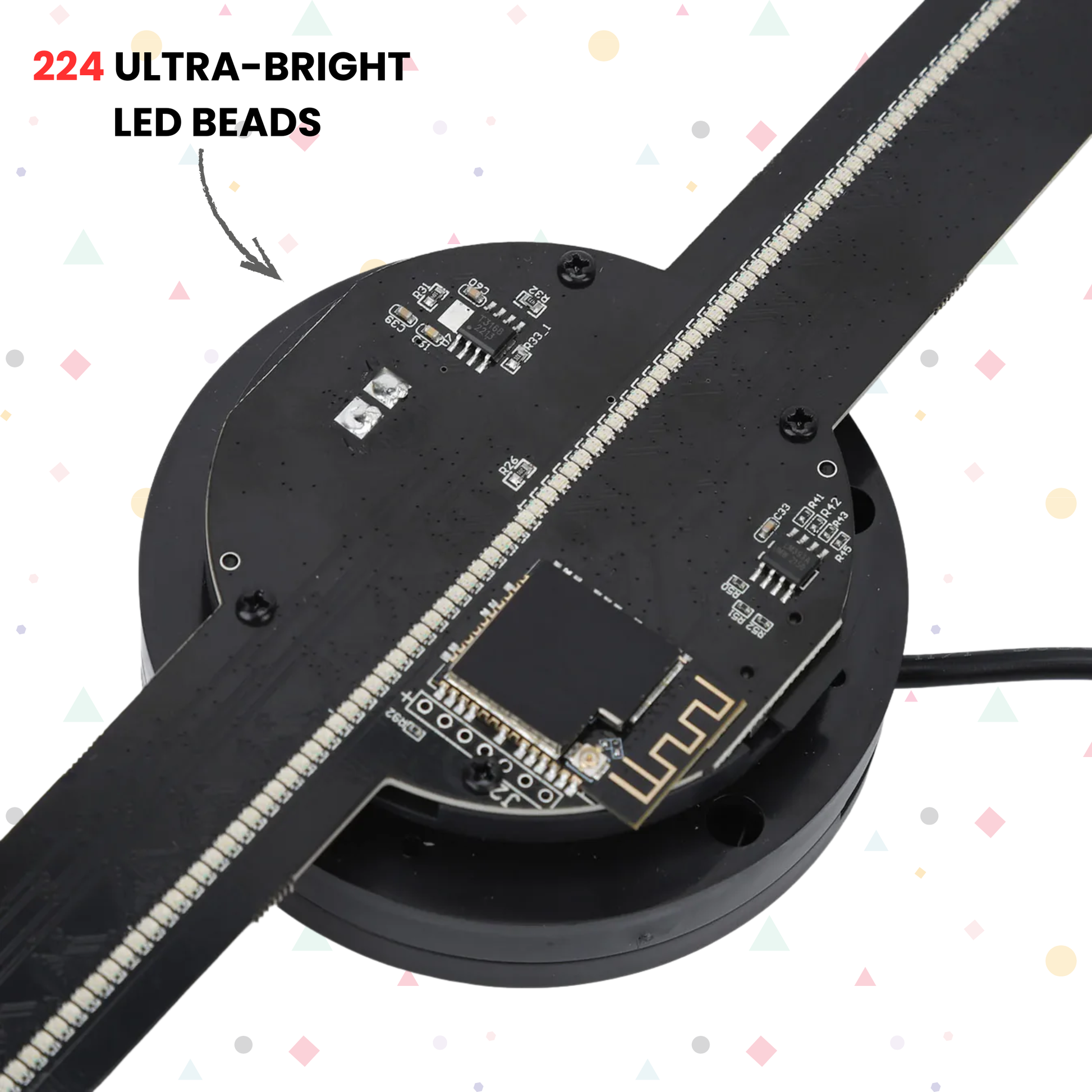 Our hologram fan uses spinning LED blades to create a 3D floating image or video.